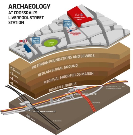 MOLA project manager Nick Elsden said: “Construction for Crossrail is providing rare and exciting opportunities for archaeologists to excavate and study areas of London that would ordinarily be inaccessible, such as under established road-systems. There are up to six metres of archaeology on site, in what is one of the oldest areas of the city, so we stand to learn a great deal.”