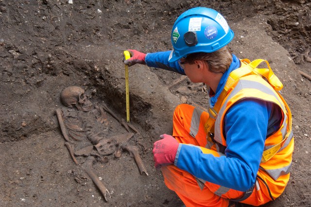 Crossrail lead archaeologist Jay Carver said: “This is a highly significant discovery and at the moment we are left with many questions that we hope to answer. We will be undertaking scientific tests on the skeletons over the coming months to establish their cause of death, whether they were Plague victims from the 14th Century or later London residents, how old they were and perhaps evidence of who they were. However, at this early stage, the depth of burials, the pottery found with the skeletons and the way the skeletons have been set out, all point towards this being part of the 14th Century emergency burial ground.”