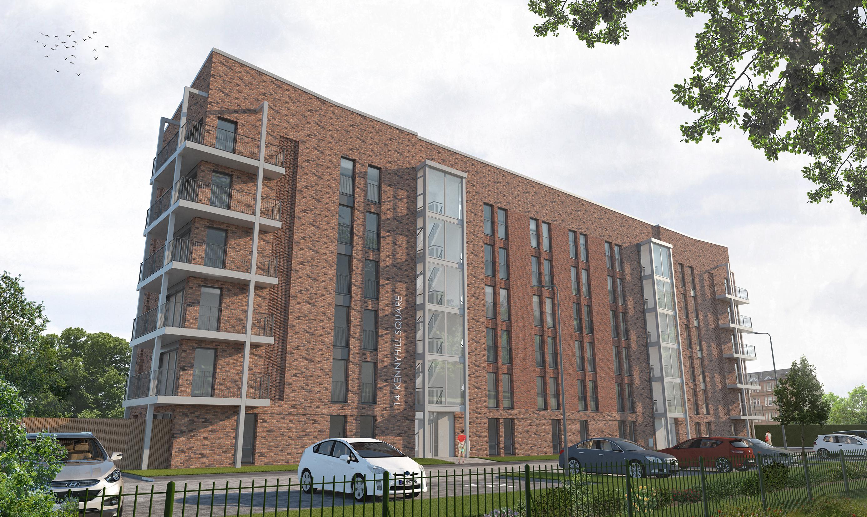 The £6m Kennyhill Square development will provide mid-market rental housing in Glasgow’s East End, with 36 apartments of one and two bedrooms built on the site of a former nursing home. The development has been designed by Grant Murray Architects.