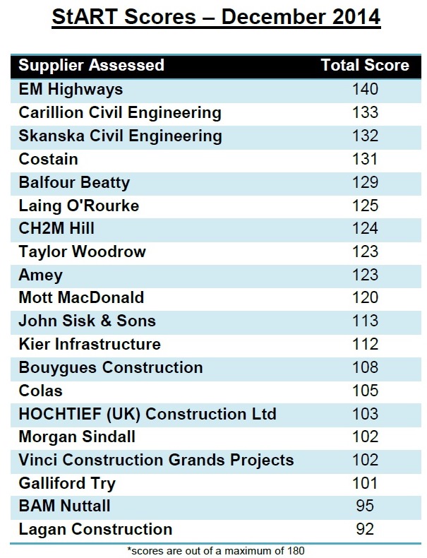EM, a subsidiary of Mouchel, scored 140 out of 180 under the Highways Agency’s strategic alignment review tool (StART) assessment.