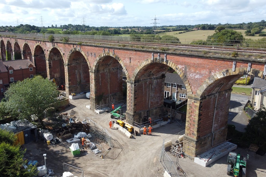 Yarm Viaduct is a Grade II listed, mid-19th century structure above the River Tees and the town of Yarm. Its 43 arches require engineering to strengthen the foundations and prevent any further movement and deterioration.