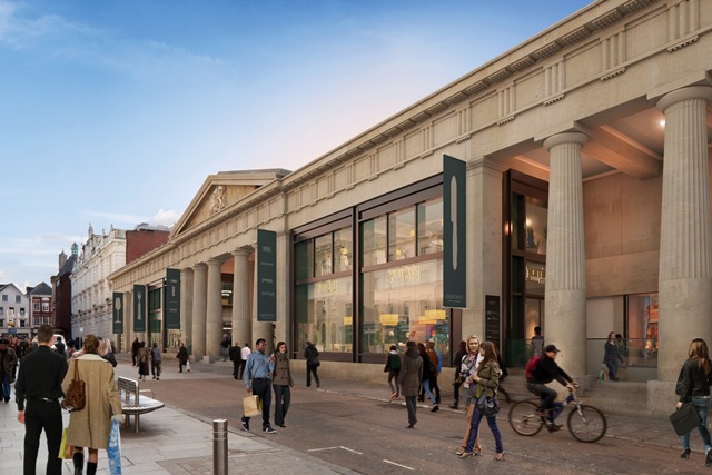 Developer Aviva Investors envisages the neo-classical Guildhall building to become a hub for the city’s night-time economy with a series of ‘artisan’ restaurants with reconfigured street scenery.