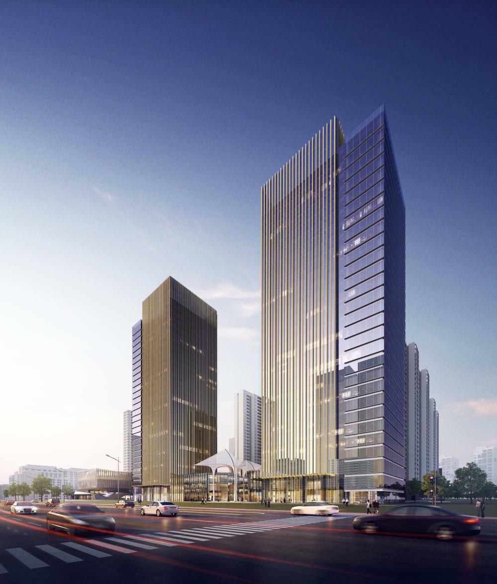 The centre is located in Wuhan East Lake High-Tech Development Zone and will consist of R&D facilities, conference rooms, staff canteen and commercial units. The 174,000m2 development includes two 137m-high tower blocks and a podium building.