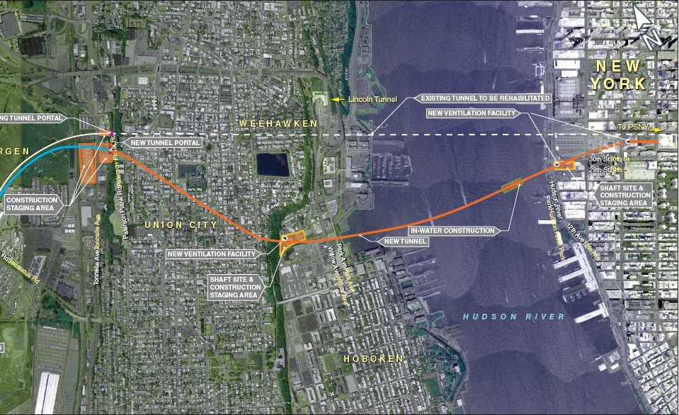 The new tunnel will be close to the North River Tunnel, between the Lincoln and Holland road tunnels.