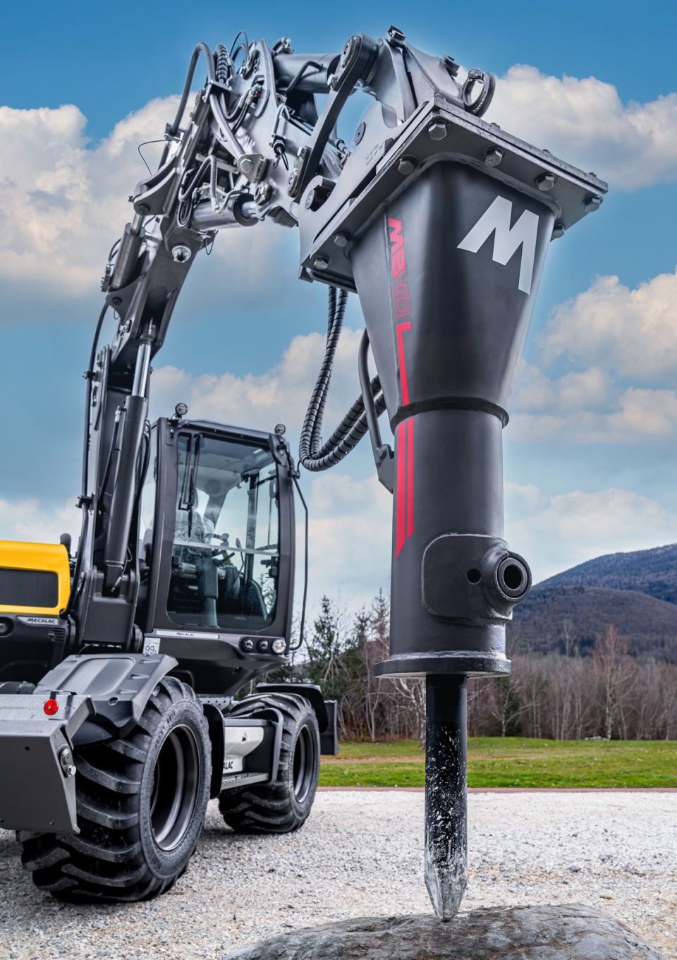Mecalac’s new breaker range comprises four sizes: the MB30, MB40, MB50 and MB80, with MB standing for Mecalac Breaker.