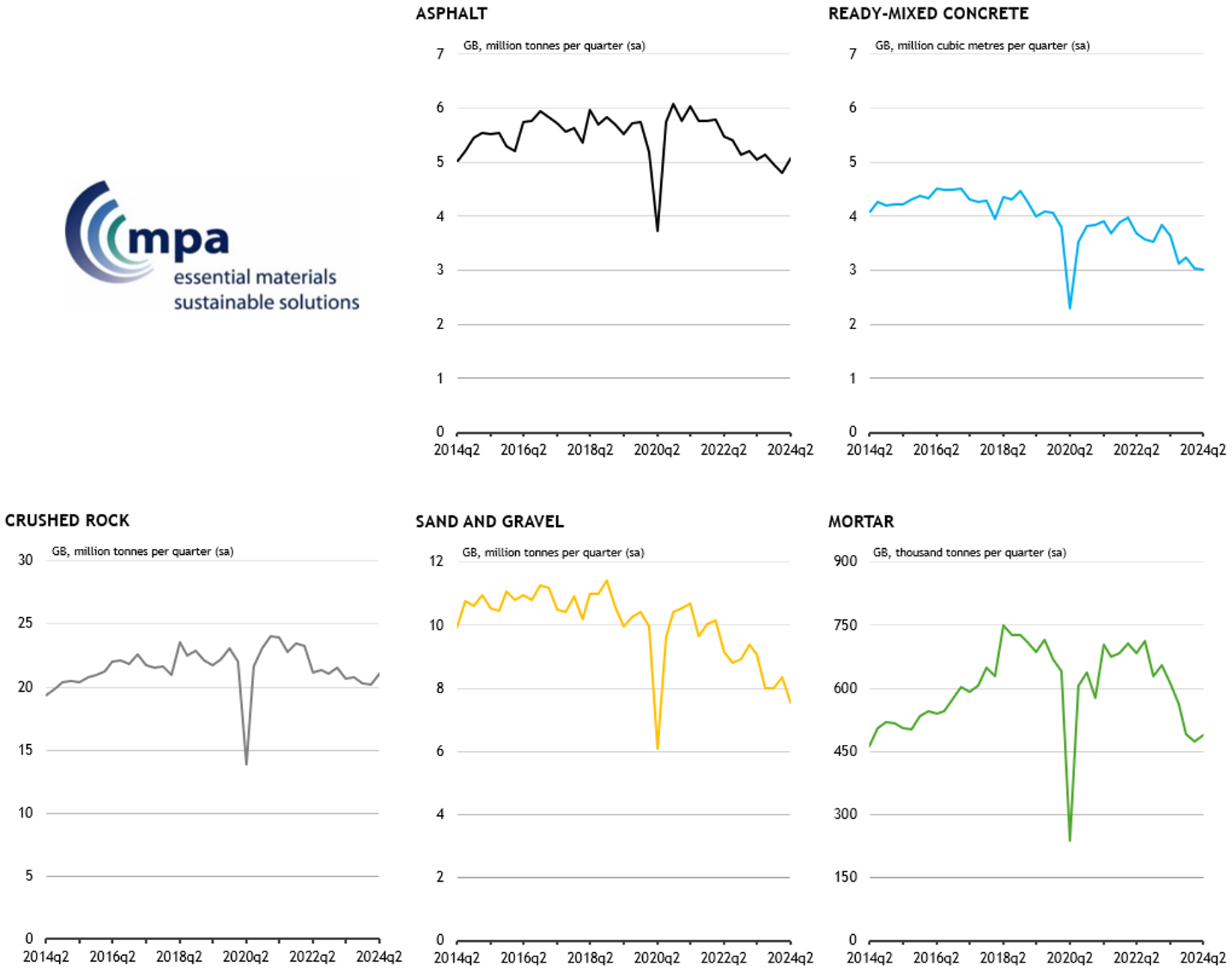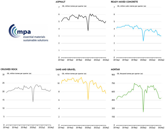 New figures from the Mineral Products Association (MPA) show a modest overall improvement in the sales of construction aggregates and asphalt in Great Britain for the second quarter of 2024.
