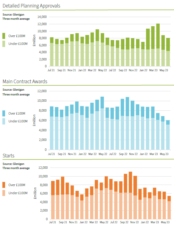 In health performance, the value of sub-£100m project-starts rose 51% in Q2 compared to Q1, but was 22% down on Q2 2022.