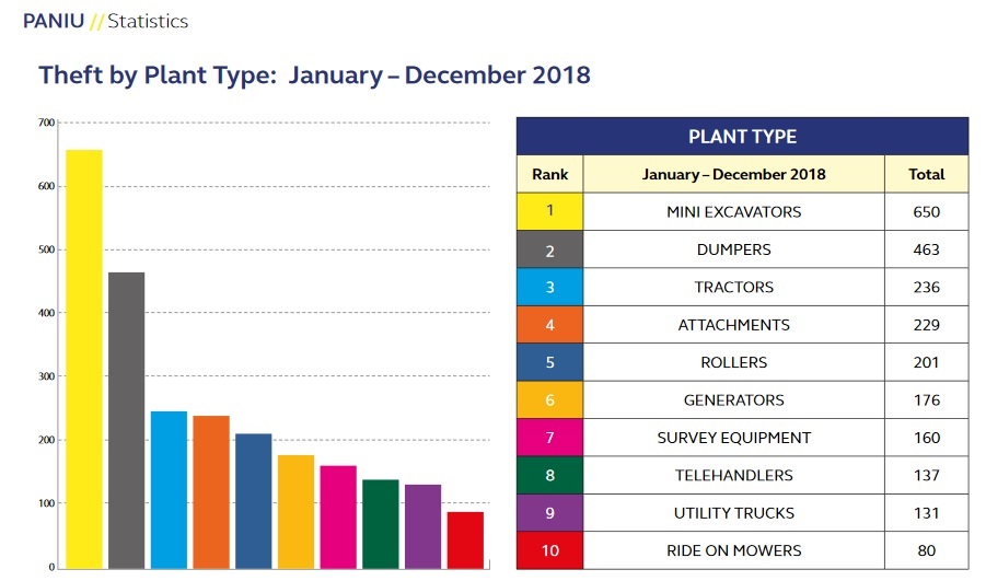 The Construction Equipment Association (CEA) has spent the past couple of years working on a successor to PANIU, which was hosted by the Metropolitan Police Service. PANIU was set up in 2008 and over 10 years recovered 824 machines to the aggregate value of more than £17m. Statistics for its final year of operation, 2018,show that 650 mini excavators were stolen that year, 463 site dumpers, 236 tractors 229 rollers and 137 telehandlers.