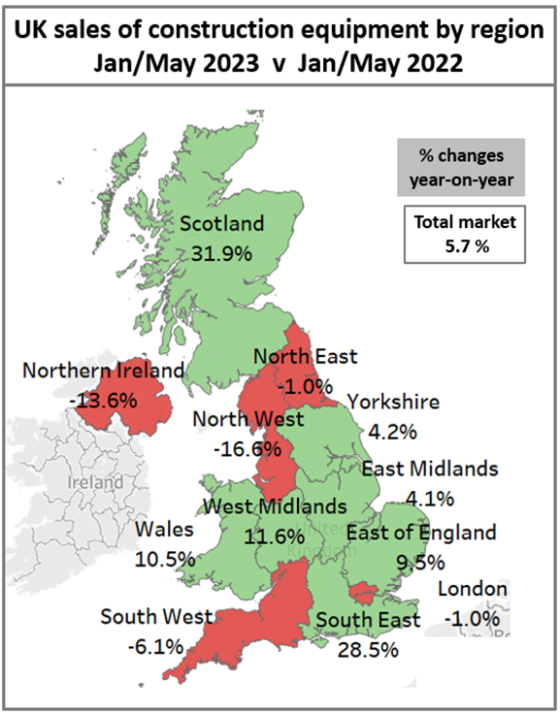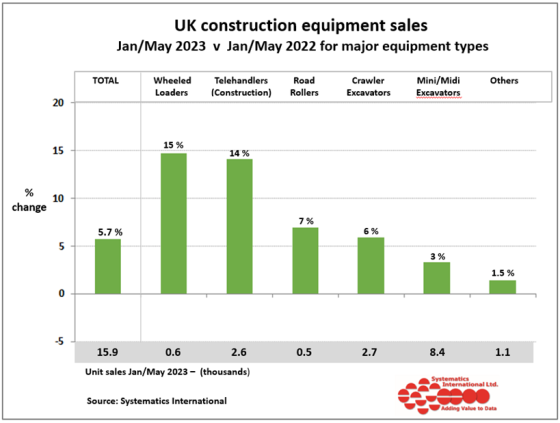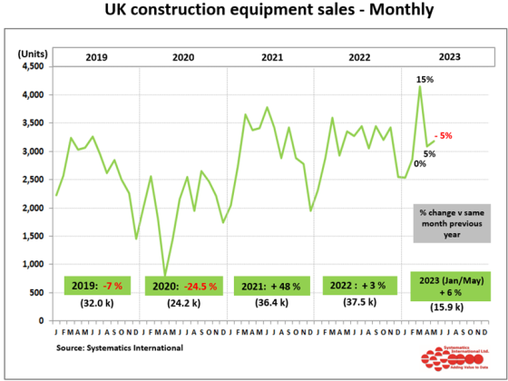 Retail sales of the main categories of construction and earthmoving equipment in May 2023 were 5% down on May 2022.