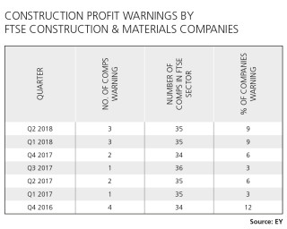 In the first six months of this year 17% of companies in the FTSE Construction & Materials sector warned about lower than expected profits according to research from consultant Ernst & Young (EY).