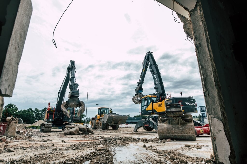 Demolition specialist Metzner Recycling used machines to bring down three buildings, sorting and processing 12,800 tonnes of construction waste, of which 96% was recycled into raw materials for future use.